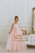 Blush flower girl dress tutu, Ivory lace girl dress, Birthday party girl dress, Wedding girl dress open back