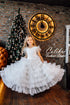 Charming flower girl dress with a fluffy tiered tulle skirt. The corset of the dress is made of satin. Feathers added on the shoulders.The dress has a V-neck at the back. The dress is complemented by a satin belt and a large bow.